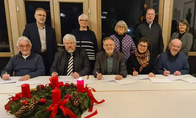 @Kirche RunzhausenJetzt ist es ganz offiziell. Unsere sechs evangelischen Kirchengemeinden werden zur einer Kirchengemeinde fusionieren: Die “Kirchengemeinde Gladenbacher Land” startet am 01. Januar 2027. Unsere Gemeindevertreter haben am 03. Dezember in Weidenhausen die Vereinbarung unterzeichnet. Das Jahr 2026 soll nun dazu genutzt werden, um zu klären, was jeder Ort genau dafür braucht und wie sich die Ortsausschüsse für Diedenshausen, Erdhausen, Gladenbach, Mornshausen, Runzhausen und Weidenhausen zusammensetzen.