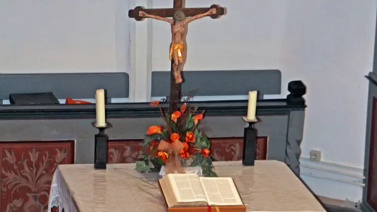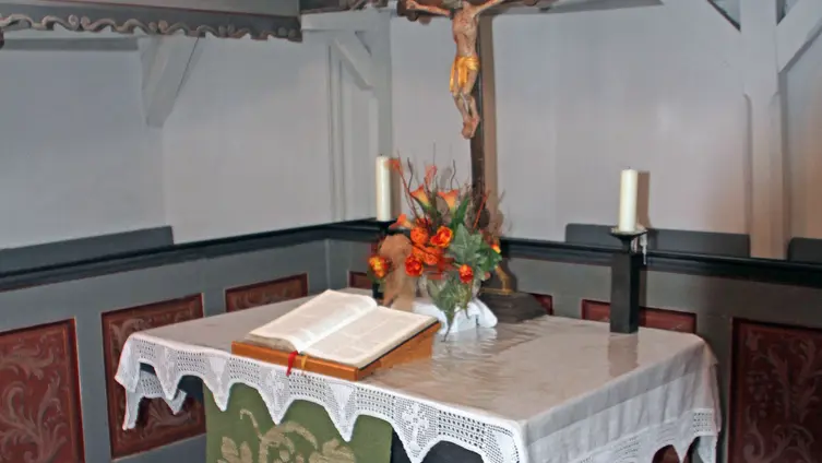 Die in den 2000er Jahren renovierte Fachwerkkirche prägt mit ihrem harmonischen Erscheinung das Ortsbild. Hier feiert die Gemeinde regelmäßig ihre Gottesdienste. Höhepunkte sind neben den Weihnachts- und Ostergottesdiensten in dem landwirtschaftlich geprägten Ort immer auch die Erntedankgottesdienste und der jährlich im Sommer gefeierte "Gottesdienst im Grünen".